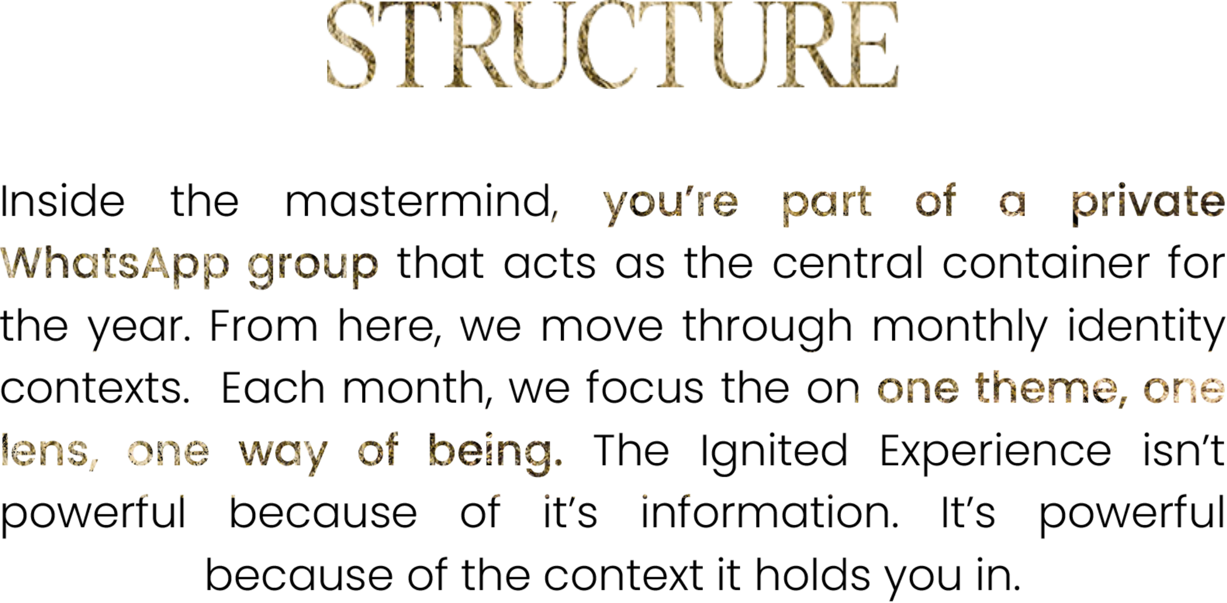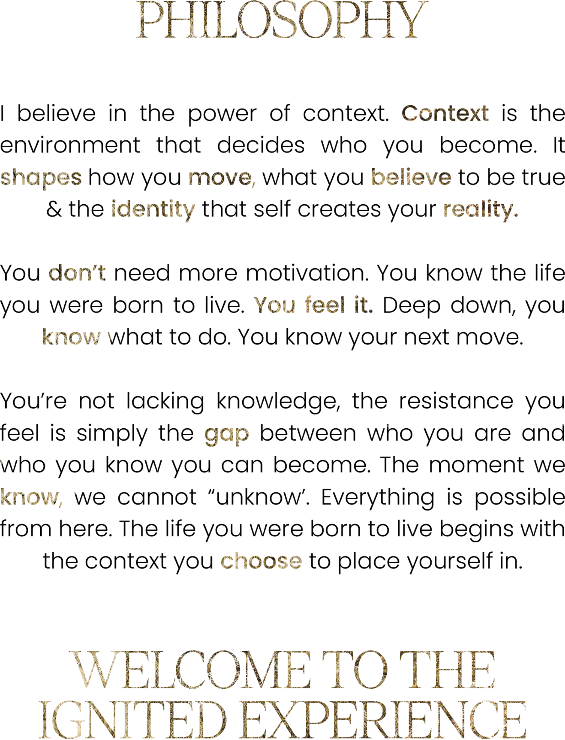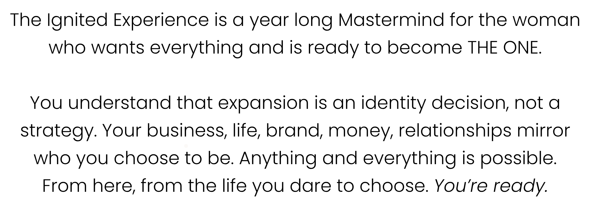 Beyond Limits is a 3 week mastermind inside The Ignited Experience. From here, everything and anything is possible.